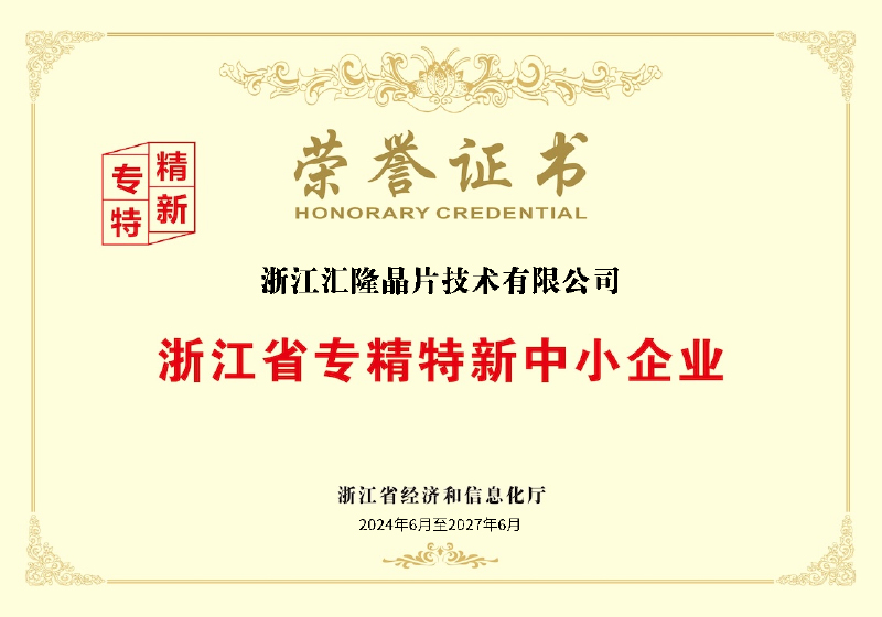 Zhejiang Province Specialized, Refined, Unique and New Small and Medium sized Enterprise Honor Certificate