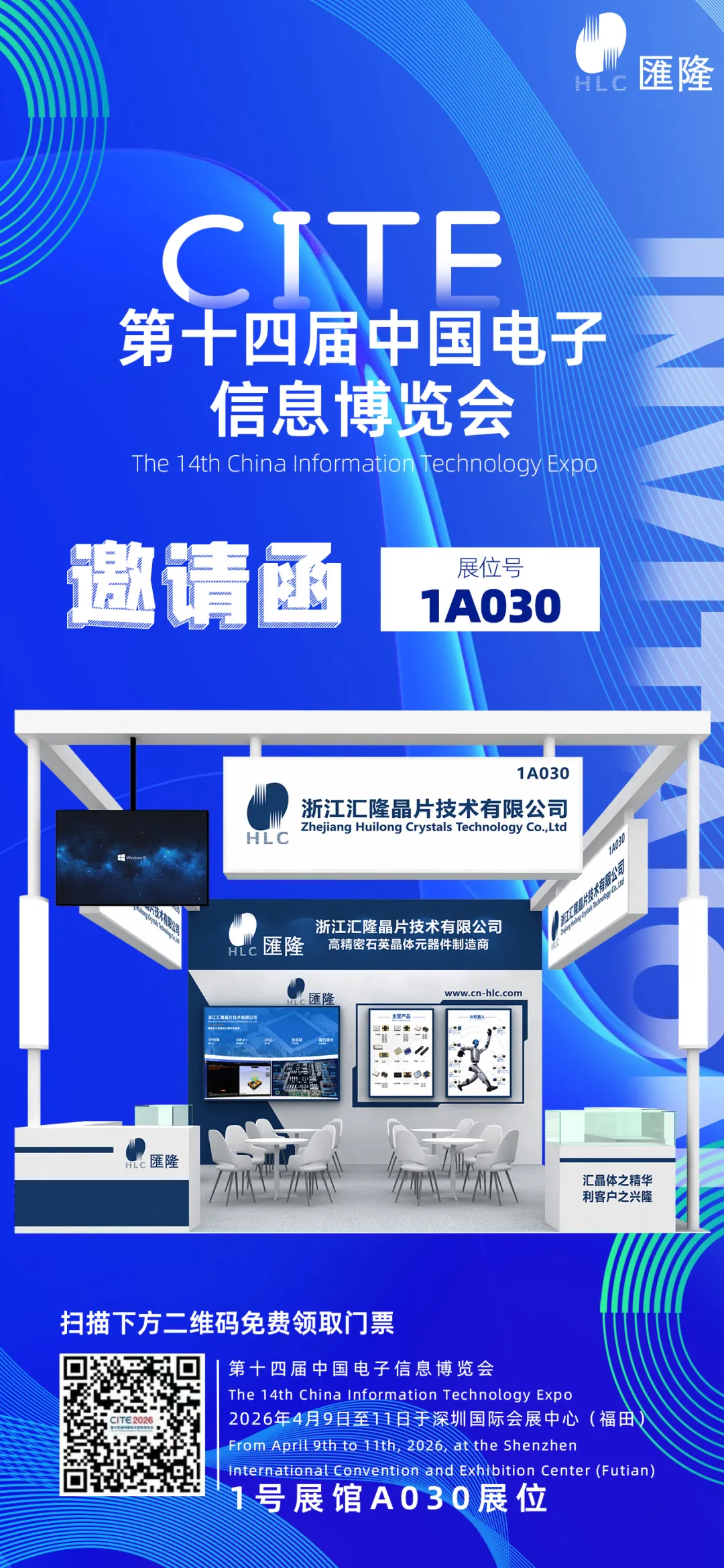 We are pleased to invite you to join HLC—Zhejiang Huilong Crystal Technology Co., Ltd—at the 14th China Information Technology Expo (CITE 2026), one of the most influential and comprehensive exhibitions across the electronic information industry chain.
